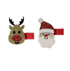 Spinki do włosów brokatowe Mikołaj Renifer 5cm 2 sztuki SM4758-MIKOŁAJ/RENIFER