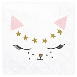 Serwetki papierowe Kotek Meow urodzinowe białe 33x33 cm 20 sztuk SP33-50