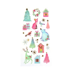Naklejki Świąteczne pastelowe choinka miś polarny 20 sztuk NR6332