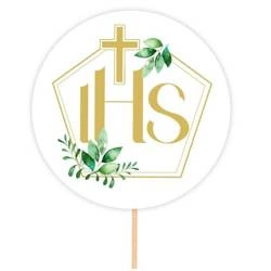 Serwetki komunijne białe srebrny nadruk IHS 33x33cm 10 sztuk 132135