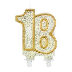 Świeczka na tort 18 złota brokatowa urodzinowa Godan 8 cm 1 sztuka SF-CZ18