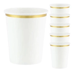 Białe kubeczki papierowe ze złotym brzegiem 260ml 6 sztuk KPP30-008-EU1