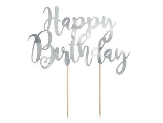 Topper na tort Happy Birthday srebrny 22,5cm KPT11-018M