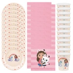 Kubeczki, talerzyki, serwetki Koci Domek Gabi papierowe zestaw urodzinowy na 18 osób zes-GABI4