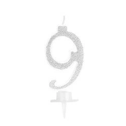 Świeczka cyferka 9 srebrna 9cm 420029
