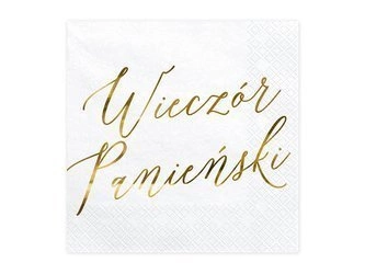 Białe serwetki Wieczór Panieński złoty napis 33cm 20 sztuk SP33-91-019ME