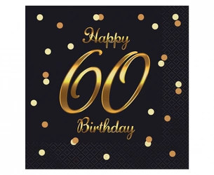 Serwetki papierowe czarne w kropki na 60 urodziny 33x33cm 20 sztuk PG-S60C