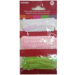 Tasiemki cekinowe ozdoba łańcuch różowy zielony biały 2m BN4773-2