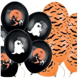 Balony Halloween duszki nietoperze czarne pomarańczowe 30cm 12 sztuk zes-HAL12