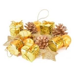Bombki na choinkę szyszki i prezenty złoty 12 sztuk BN6011ZLO-7581