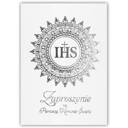 Białe serwetki komunijne IHS srebrny ornament 33cm 20 sztuk SP33-63-018-KOMUNIA