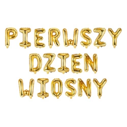 Balony foliowe PIERWSZY DZIEN WIOSNY złoty napis 35cm