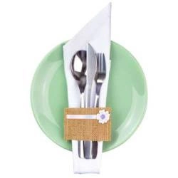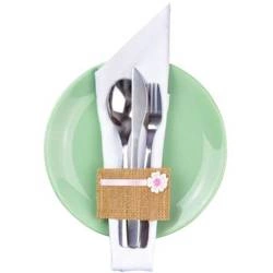 Jutowa opaska na sztućce kwiatek biały 4 sztuki WN7263-BIAŁE
