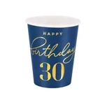 Kubeczki papierowe urodzinowe Happy Birthday 30 granatowe 220ml 6 sztuk 130377