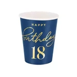 Kubeczki papierowe urodzinowe Happy Birthday 18 granatowe 220ml 6 sztuk 130360