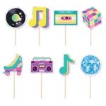 Dekoracje do babeczek muffinek pikery toppery Retro Disco 10,5cm 8 sztuk 156810