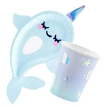 Zestaw kubeczki talerzyki serwetki na urodziny muszelki opalizujące ZES-UN26