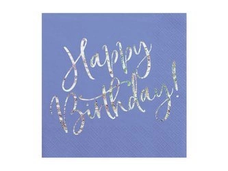 Niebieskie serwetki na urodziny Happy Birthday holo 33cm 20 sztuk SP33-80-074