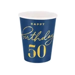 Kubeczki papierowe urodzinowe Happy Birthday 50 granatowe 220ml 6 sztuk 130391