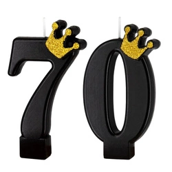 Świeczki na tort 70 czarna złota korona 8,8 cm sw70-2