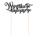 Topper na tort z napisem Wszystkiego najlepszego czarny brokatowy 19cm 1 sztuka 144626