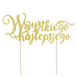 Topper na tort z napisem Wszystkiego najlepszego złoty brokatowy 19cm 1 sztuka 512102