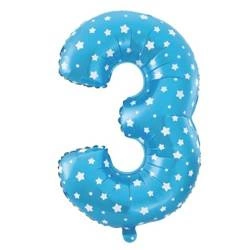 Balon foliowy 3 niebieski w gwiazdki 100cm 1szt 128466