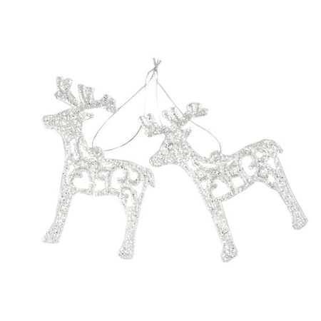Zawieszki na choinkę Renifery srebrne brokatowe 11cm 2 sztuki BN0448