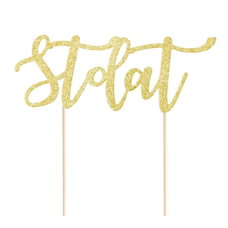Topper urodzinowy na tort z napisem Sto Lat - złoty brokat.