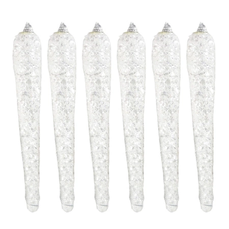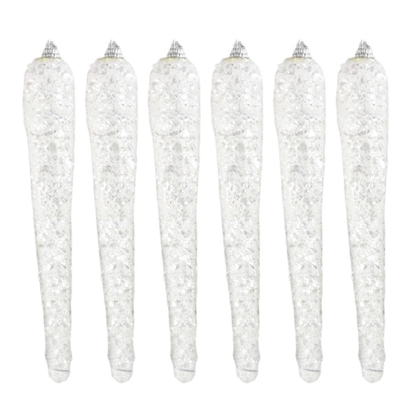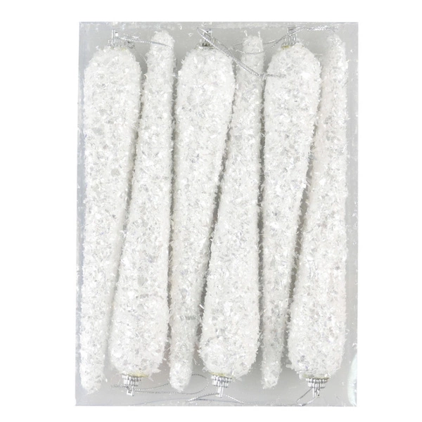 Zawieszki choinkowe białe sople posrebrzane bombki 16cm 6 sztuk BN0295