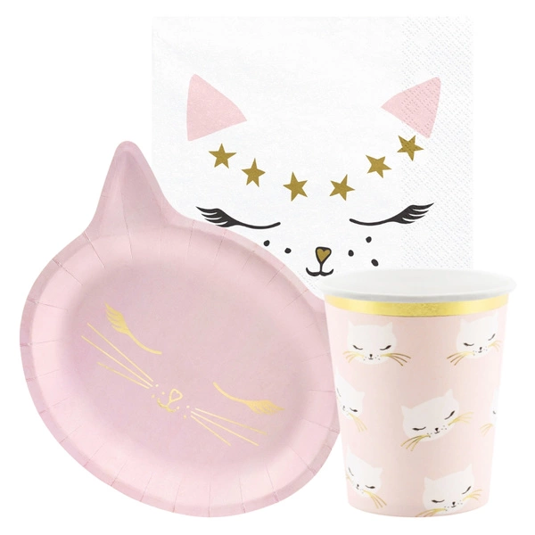 Zestaw urodzinowy Kotek Talerzyki Kubeczki Serwetki 32el. zes-KOT1