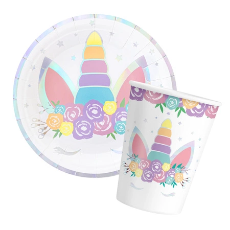 Kubeczki talerzyki papierowe Jednorożec Jednorożce zestaw zes-JED3
