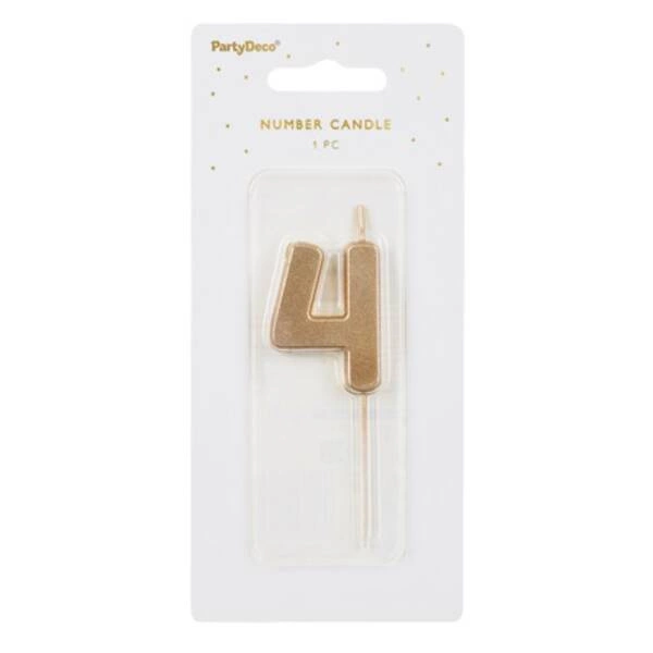 Świeczka na tort cyferka 4 złota urodziny 4,5cm Partydeco 1 sztuka SCU9-4