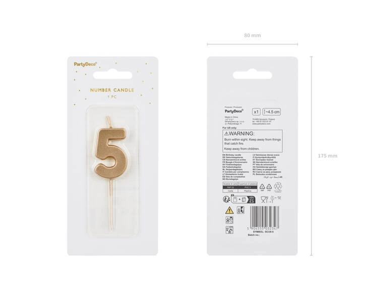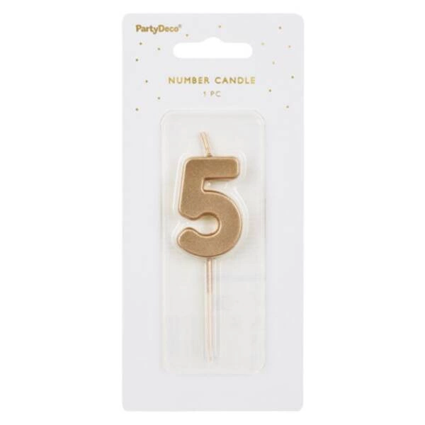 Świeczka na tort cyferka 5 złota urodziny 4,5cm Partydeco 1 sztuka SCU9-5