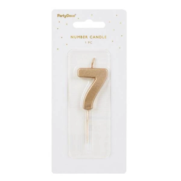 Świeczka na tort cyferka 7 złota urodziny 4,5cm Partydeco 1 sztuka SCU9-7