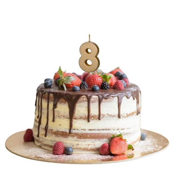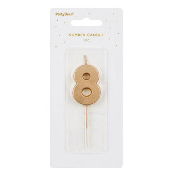 Świeczka na tort cyferka 8 złota urodziny 4,5cm Partydeco 1 sztuka SCU9-8