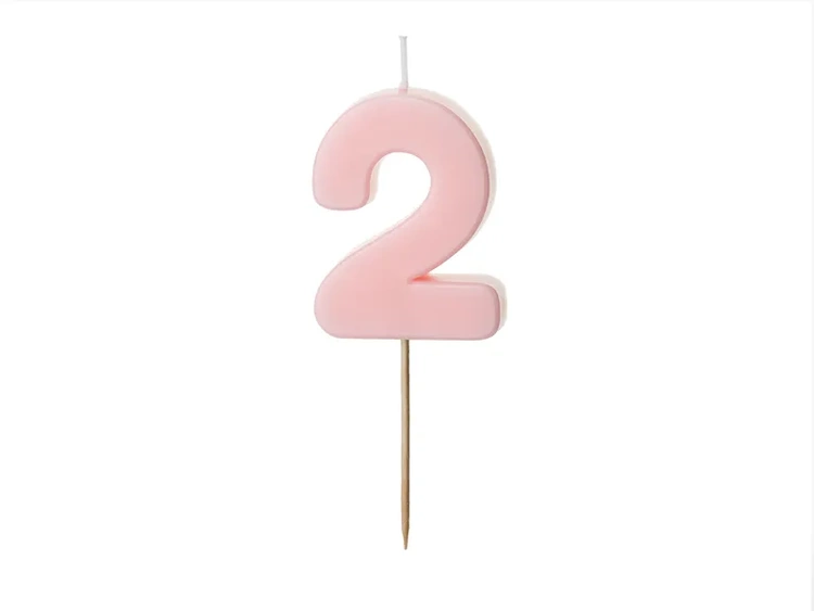 Świeczka na tort cyferka 2 różowa pastelowa jasna 5,5cm 1 sztuka SCU10-2-081J