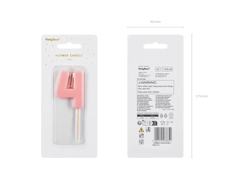 Świeczka na tort cyferka 4 różowa pastelowa jasna 5,5cm 1 sztuka SCU10-4-081J