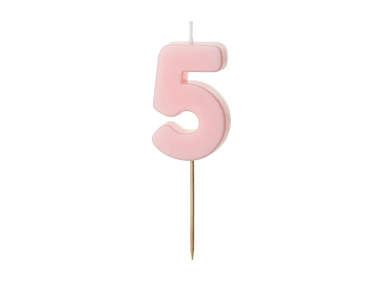 Świeczka na tort cyferka 5 różowa pastelowa jasna 5,5cm 1 sztuka SCU10-5-081J
