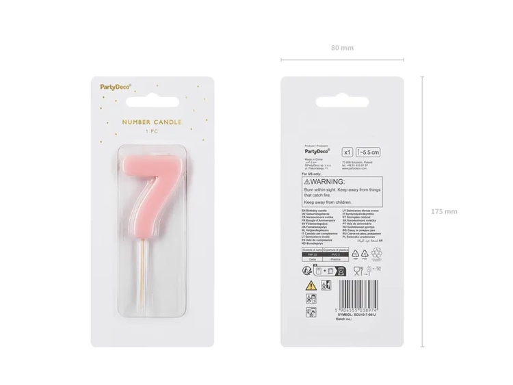 Świeczka na tort cyferka 7 różowa pastelowa jasna 5,5cm 1 sztuka SCU10-7-081J