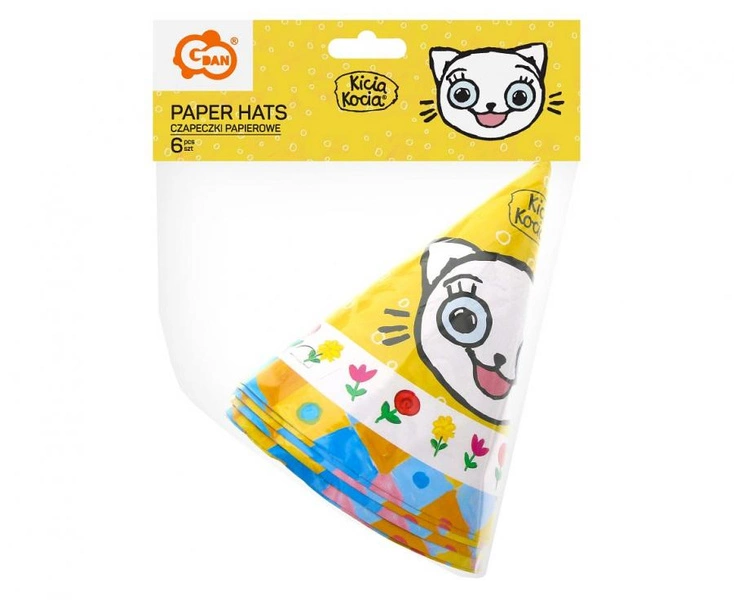 Czapeczki urodzinowe Kicia Kocia kolorowe Godan 6 sztuk PM-CKKO