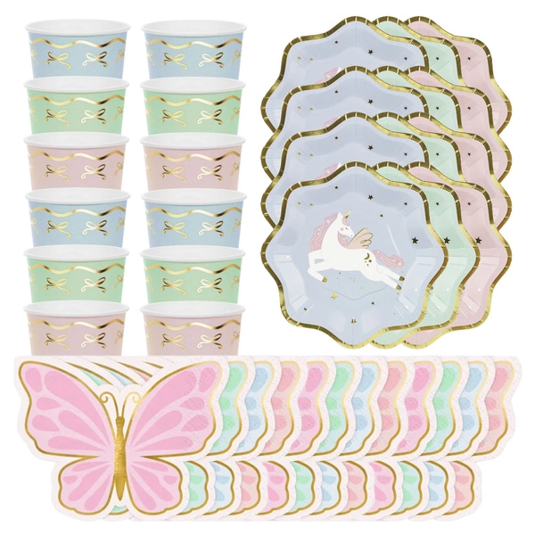 Kubeczki talerzyki serwetki Jednorożec papierowe zestaw po 12 sztuk ZES-JED6