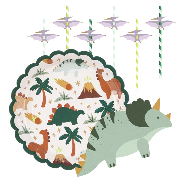 Talerzyki serwetki słomki Dinozaury Dino Party papierowe zes-DINO8