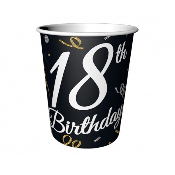 Kubeczki papierowe 18th Birthday czarne 250ml 6 sztuk KP-18BD