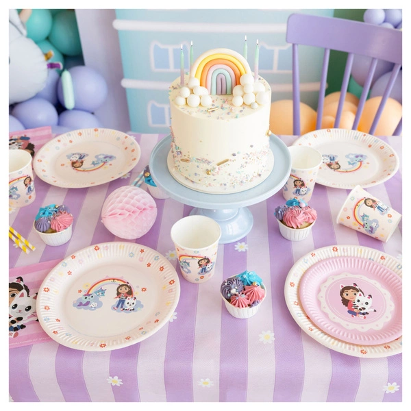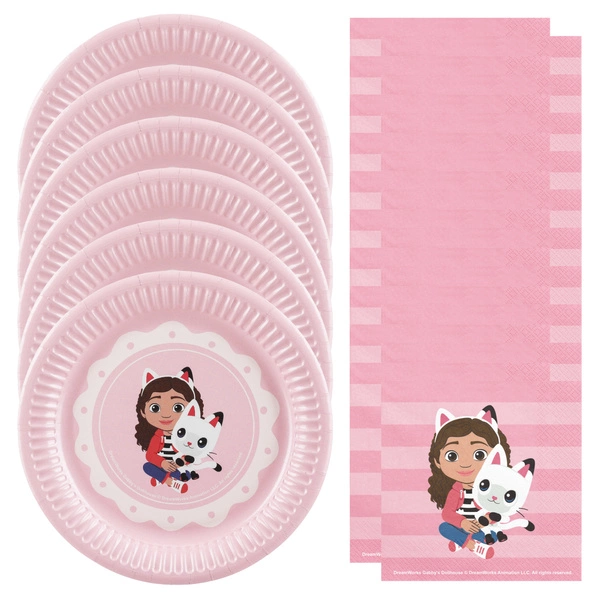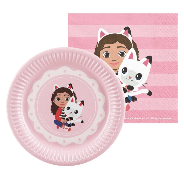 Talerzyki serwetki Koci Domek Gabi urodziny papierowe różowe dla 6 osób zes-GABI5