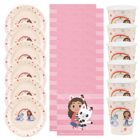 Kubeczki, talerzyki, serwetki Koci Domek Gabi urodziny papierowe dla 6 osób zes-GABI9