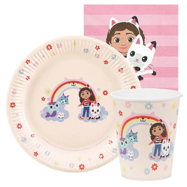 Kubeczki, talerzyki, serwetki Koci Domek Gabi urodziny papierowe dla 18 osób zes-GABI11