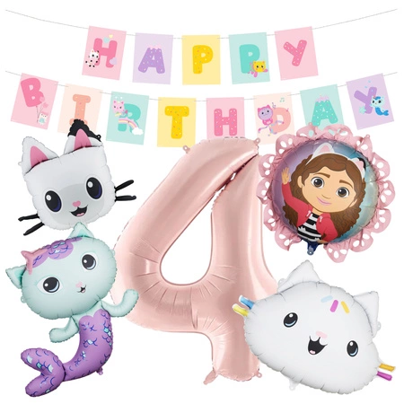 Balony na 4 urodziny Koci Domek Gabi foliowe zestaw zes-GABI16