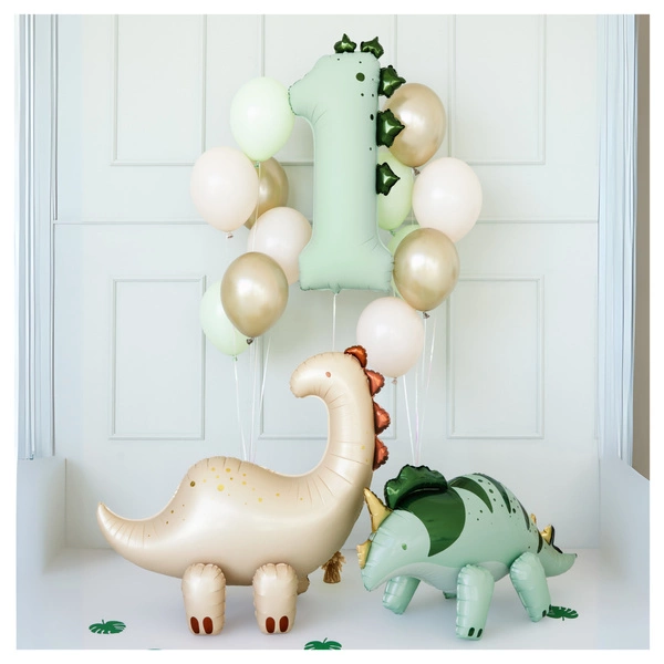 Balon foliowy cyfra 1 w kolorze miętowym dinozaur.