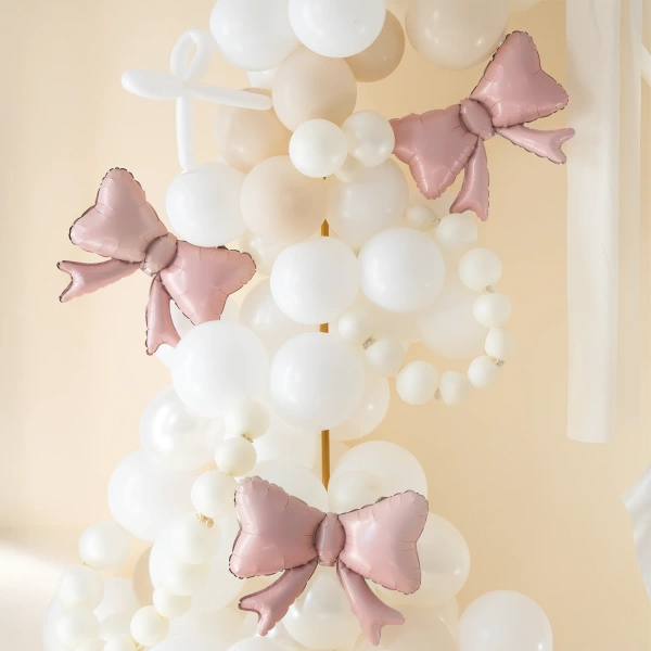 Balony foliowe kokardki w kolorze różowym szampańskim.